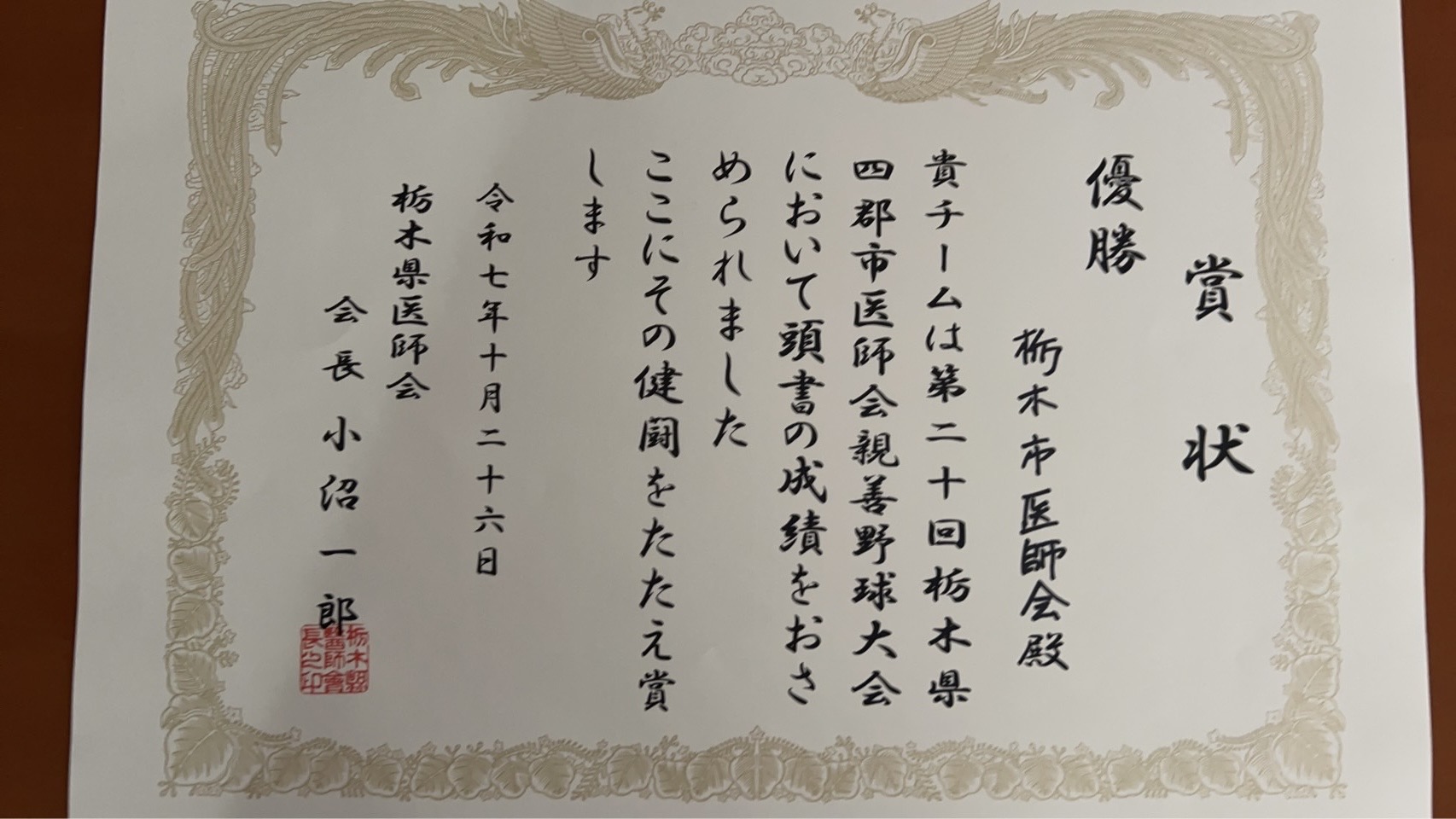下都賀郡医師会の野球チーム、ドクターズが四郡市野球大会で優勝致しました